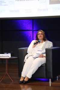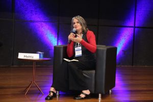 Natália Ariede, Anchor, CNBC, Brazil chairing the plenary panel Shaping Humanity Together